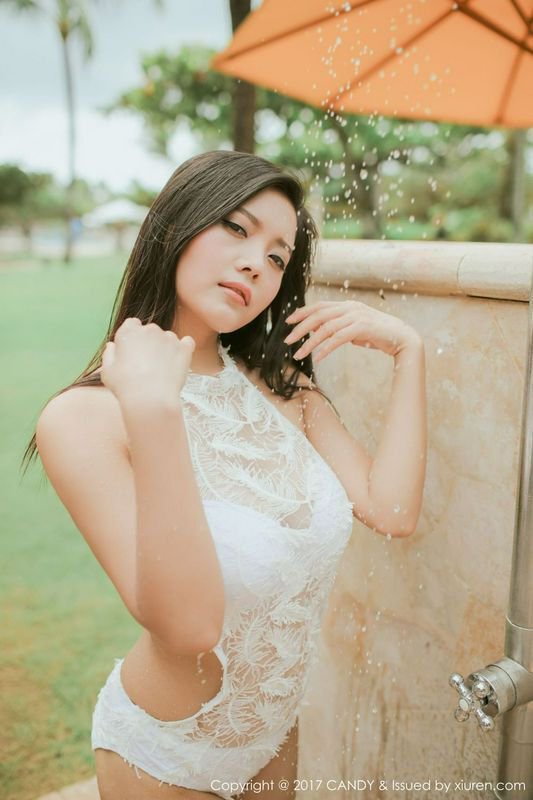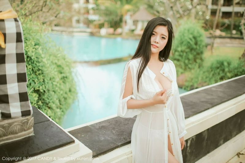 巴厘岛女神林美惠子粉色吊带难掩压迫感